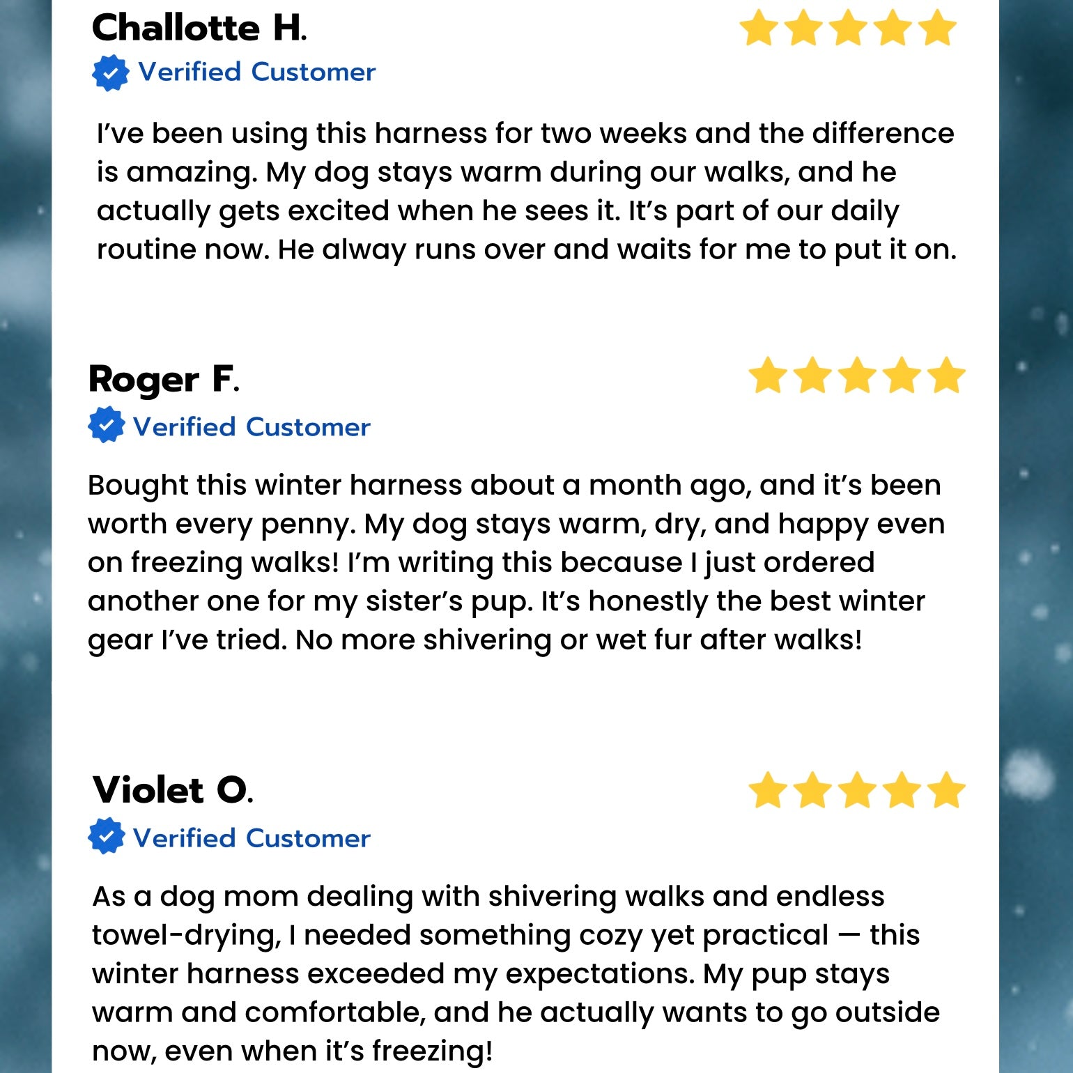 Trapping body heat and blocking wind chill, the harness warms your dog instantly and prevents shivering — for cozy comfort all winter long.